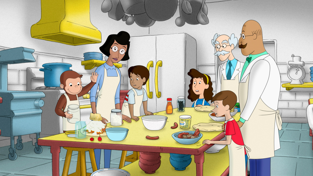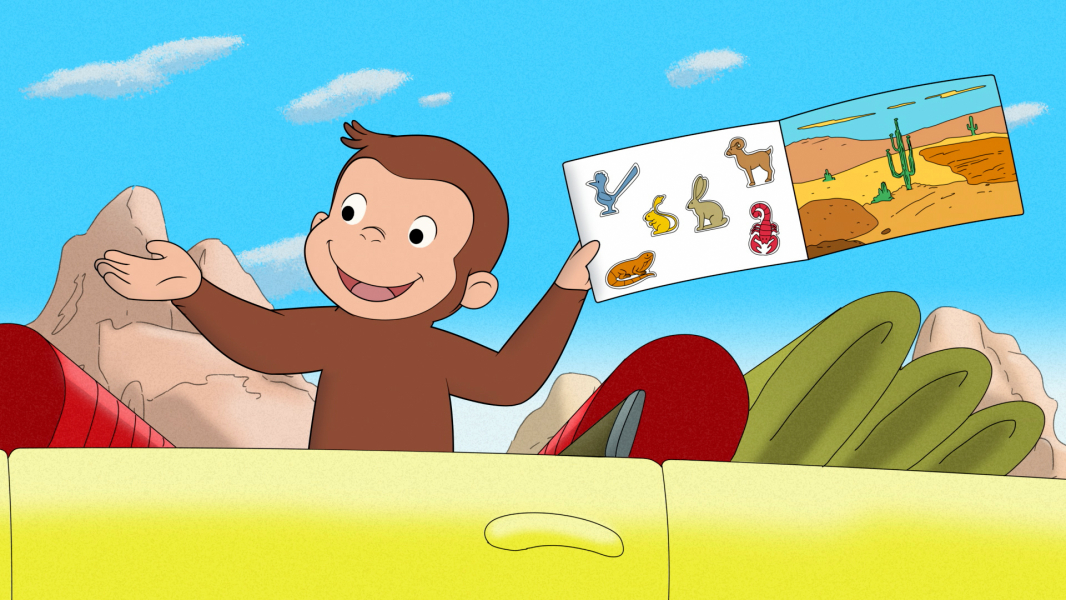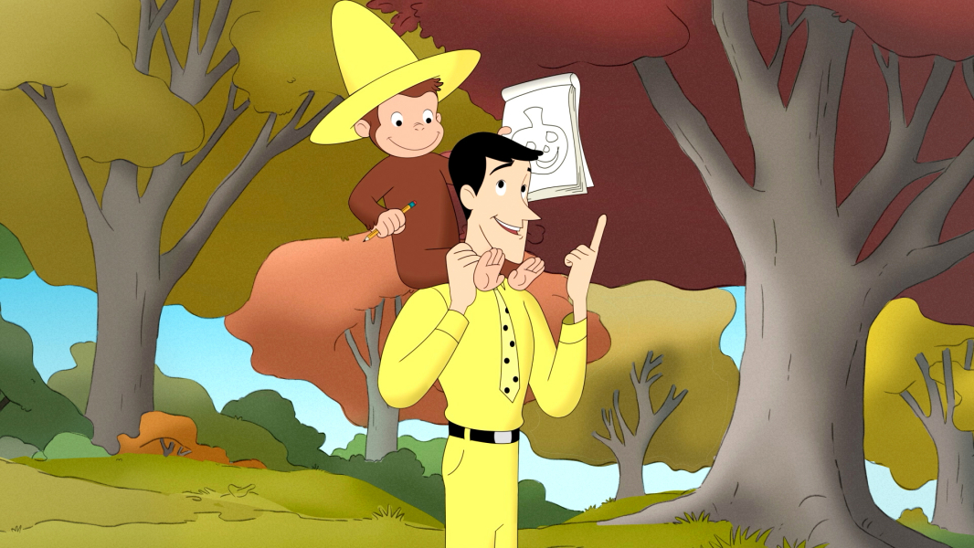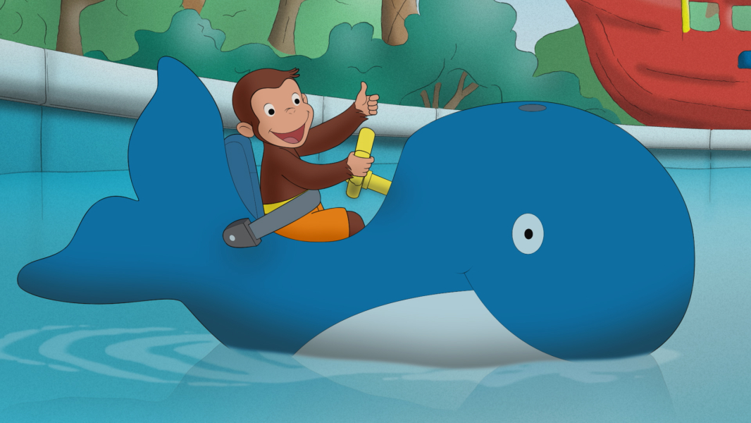 Aloha! George, a Sárga Kalapos Férfi és barátai Hawaiin nyaralnak, George pedig már alig várja, hogy felfedezze magának a szigetet. Hirtelen azt se tudja, hol kezdje, annyi gyönyörű hely közül tud választani - ott a csábító óceán, az egzotikus virágok és egy bámulatos vulkán is. Hundley, aki csak szeretne összegömbölyödni a tutaján, véletlenül kisodródik a tengerre, és magával viszi George-ot is. / George imád barátkozni, az új barátja pedig igazán különleges. A földön fekszik és pont olyan alakja van, mint George-nak. Amikor integet neki, a barátja visszainteget, és követi őt, bárhova is megy. George új játszótársa nagyon barátságos, de felettébb csendes. Allie elmagyarázza neki, hogy ez a barát valójában az árnyéka. A Sárga Kalapos Férfi megmutatja nekik, hogy csinálhatnak árnyékbábokat, például nyulat, kutyát és madarat.