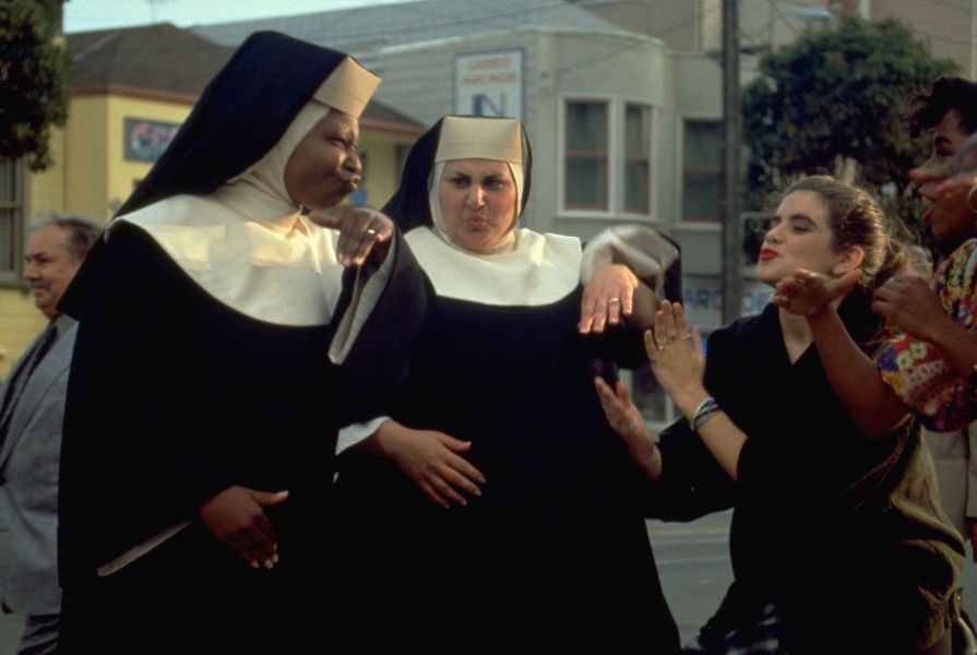 A bővérű Deloris Van Cartier igazán nem az a fajta nő, aki gyámolitásra szorul. Egy másodosztályú kaszinó másodosztályú énekesnőjeként ismer már minden eszközt, amivel leszerelheti a tolakodó férfinépet. Egy nap azonban véletlenül tanúja lesz egy gyilkosságnak, és menekülnie kell, mivel a gyilkos véletlenül éppen a barátja. Nincs más választása, az FBI segitségét kell kérnie. A fiúk nem is késlekednek, eldugják az énekesnőt oda, ahol aztán tényleg senki sem keresné: egy apácazárdába.