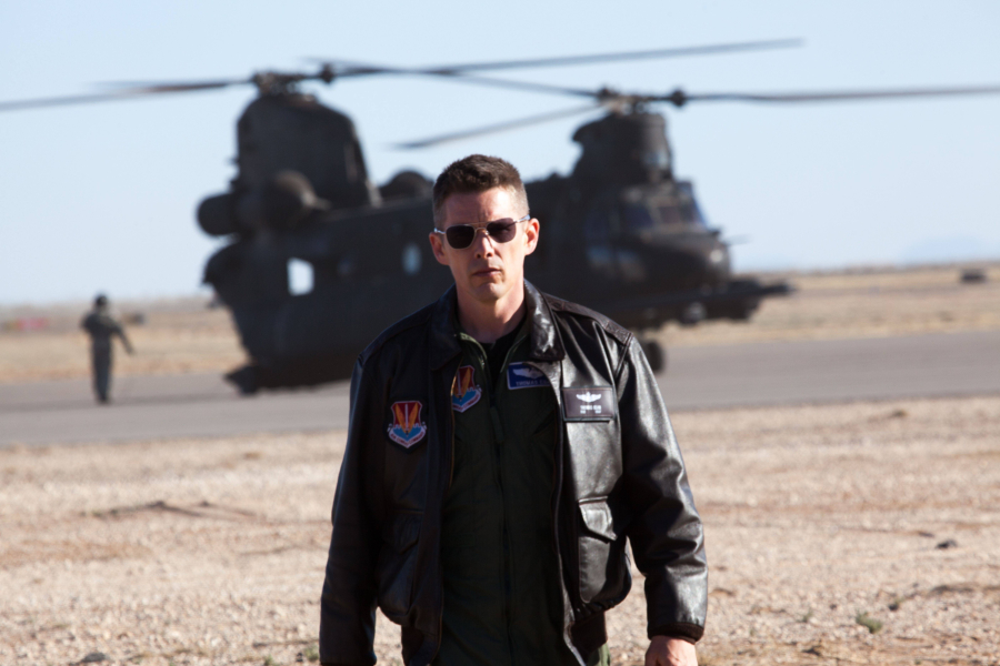 (háborús film, 2014.) Tommy, az expilóta újonnan drónokra cserélte a vadászgépeket, noha nem önszántából, sokkal inkább kényszerből.