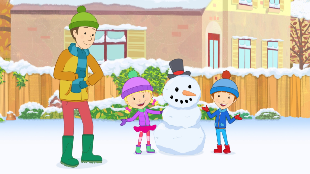 Daisy és Ollie izgatottan ébrednek, mert megtudják, hogy az éjszaka folyamán havazott. Minden csupa fehér! Azt tudják, hogy a hó hideg és ropogós, de miből van? Már a kertben játszva Daisy és Ollie különös nyomokra bukkan. Felfedeznek egy hóembert!