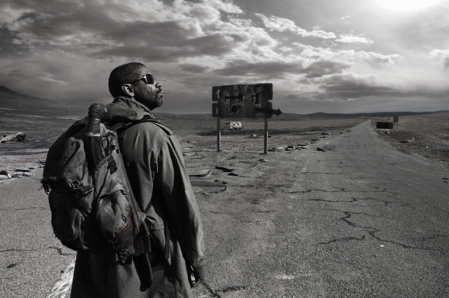 A Földet 30 évvel a történet kezdete előtt atomháború pusztította el. A világvége utáni pusztaságban az erőszak az úr. Ha nem hord az ember szemüveget, könnyen megvakulhat. Az utakon lerobbant, holtestekkel teli autók állnak, fosztogatók leselkednek a vándorokra. Éli, a magányos harcos nyugatra akar eljutni, hogy beteljesítse küldetését. Van nála valami, ami értékesebb minden fegyvernél és az élelmiszernél is. Egy könyv utolsó példánya, amely hitet adhat az embereknek, hogy van remény az újjászületésre. Vannak, akik ölni is hajlandóak azért, hogy megszerezzék a Bibliát. Éli a kisvárosban keresztezi a környéket uraló hadúr útját. Carnegie a martalócaival megszállottan kutatja a könyv nyomát, a könyv segítségével akarja kiterjeszteni hatalmát. Az emberiség sorsa Éli kezében van.