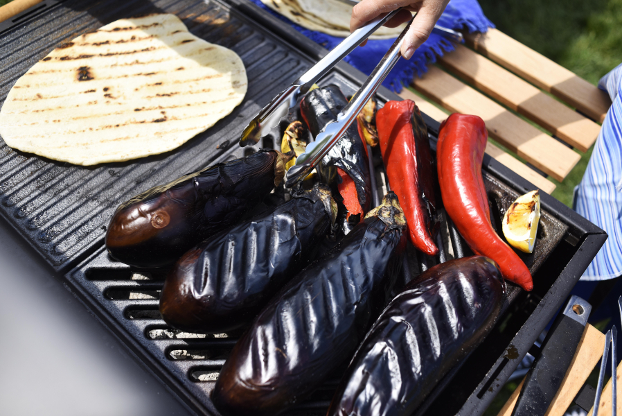 Kreatív vegetáriánus fogások a grillen: juhtúróval töltött gombák, grillezett káposztasteak, nyári zöldségek, majd flambírozott eper és áfonya mézzel, virágporral és citromos kakukkfűvel. Színes, húsmentes menü, tele ízekkel és egészséggel.
