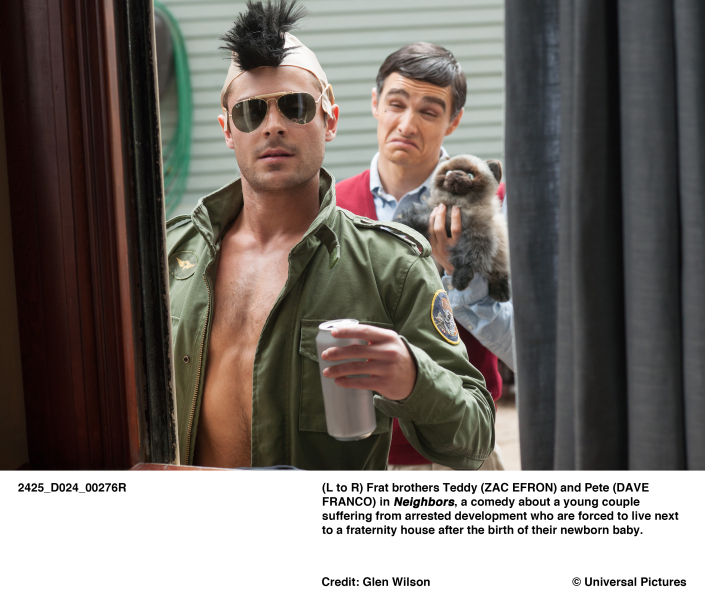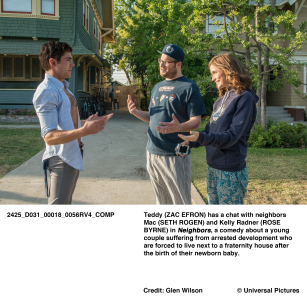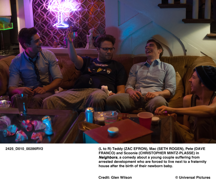 (Vígjáték, 2014) Mac és Kelly megpróbálnak együttműködni az egyetemi diákszövetséghez tartozó szomszédaikkal, ám ahogy egyre sokasodnak a szomszédban az egyetemi bulik, fogy a türelmük, végül harc indul a területért.