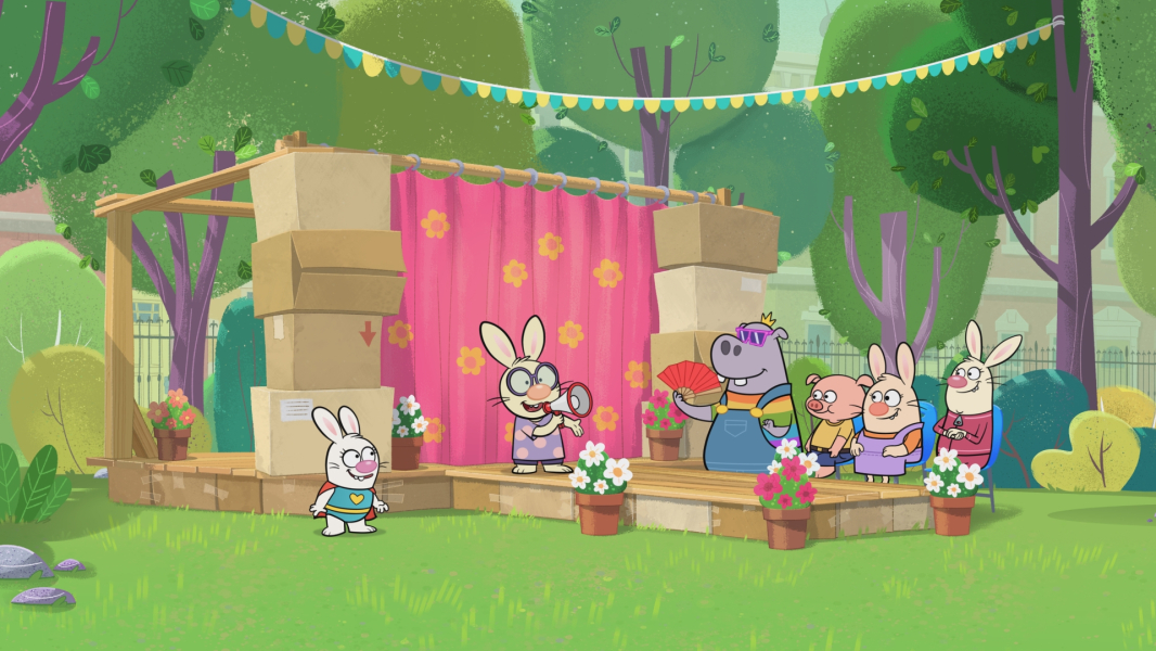 A Parkköszöntő Napon Nyuszi emlékezteti barátait a csapatmunka fontosságára.