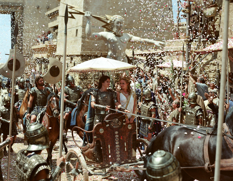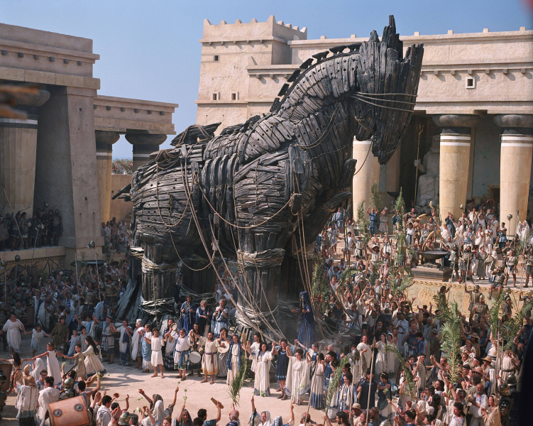 Az ókori Hellászban az irodalom talán legismertebb szerelmespárja - Parisz, Trója hercege (Orlando Bloom) és Helené, a spártai hercegnő (Diane Kruger) - ártatlan találkozásából akkora háború robban ki, ami egy egész civilizáció végromlását fogja előidézni. Parisz elszereti és elrabolja Helenét férjétől, Meneláosz királytól (Brendan Gleeson), és ez nem maradhat megtorlás nélkül. És aki Meneláoszt sérti meg, az megsérti bátyját is, Mükéne hatalmas királyát, Agamemnónt (Brian Cox), aki azonnal hadba hívja a görög seregeket, hogy Trója ellen vonuljanak, visszaszerezzék Helenét és fivére becsületét. Agamemnónnak kapóra is jön ez az eset, hiszen végtelen kapzsiságában régóta feni a fogát Ilionra: ha elfoglalja Tróját, övé a teljes Égei-tenger, és megerősíti hatalmát máris óriási birodalma felett. Ilion, a fallal körülvett város, amit Priamosz király (Peter O''Toole) irányít és fia, a nagy Hektór herceg (Eric Bana) véd, olyan fellegvár, amit még soha egyetlen sereg sem tudott bevenni. Hogy Trója győz, vagy elbukik, az egyetlen ember döntésén múlik: sikerül-e megnyerni a háborúnak Akhilleuszt (Brad Pitt), az ókor leghatalmasabb és legtekintélyesebb hadvezérét? Akhilleusz öntörvényű, lázadó és a szóbeszéd szerint sebezhetetlen, nem hódol be senkinek és semminek, csak saját dicsőségéért harcol. Az örök hírnév iránti csillapíthatatlan étvágya veszi rá, hogy Trója alá vonuljon Agamemnón zászlaja alatt - de végül a szerelem lesz az, ami meghatározza sorsát. Két civilizáció fog összecsapni a becsületért és a hatalomért. Ezrek fognak elesni a dicsőségért vívott harcban. És egy egész nép fog eltűnni a föld színéről - a szerelemért.